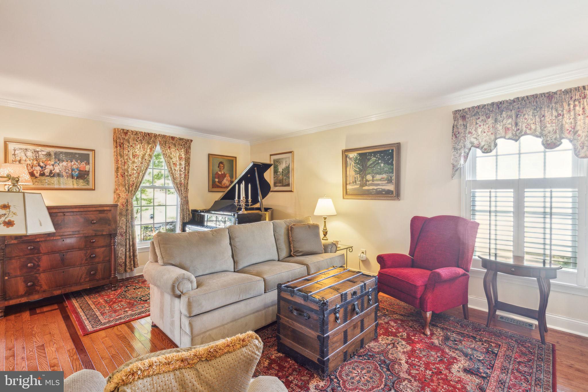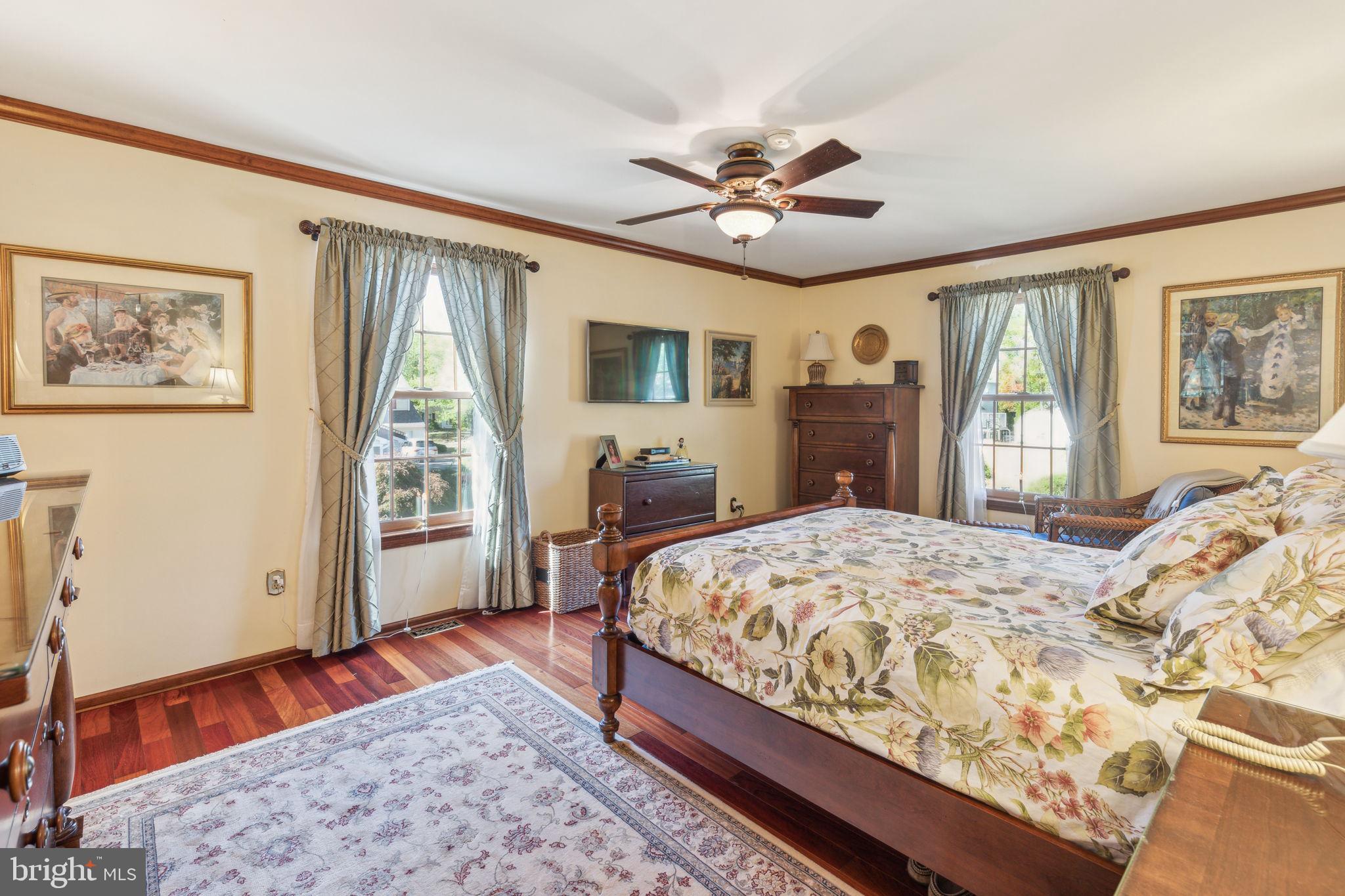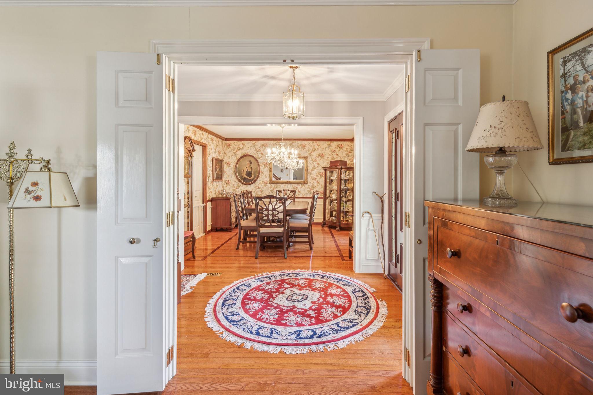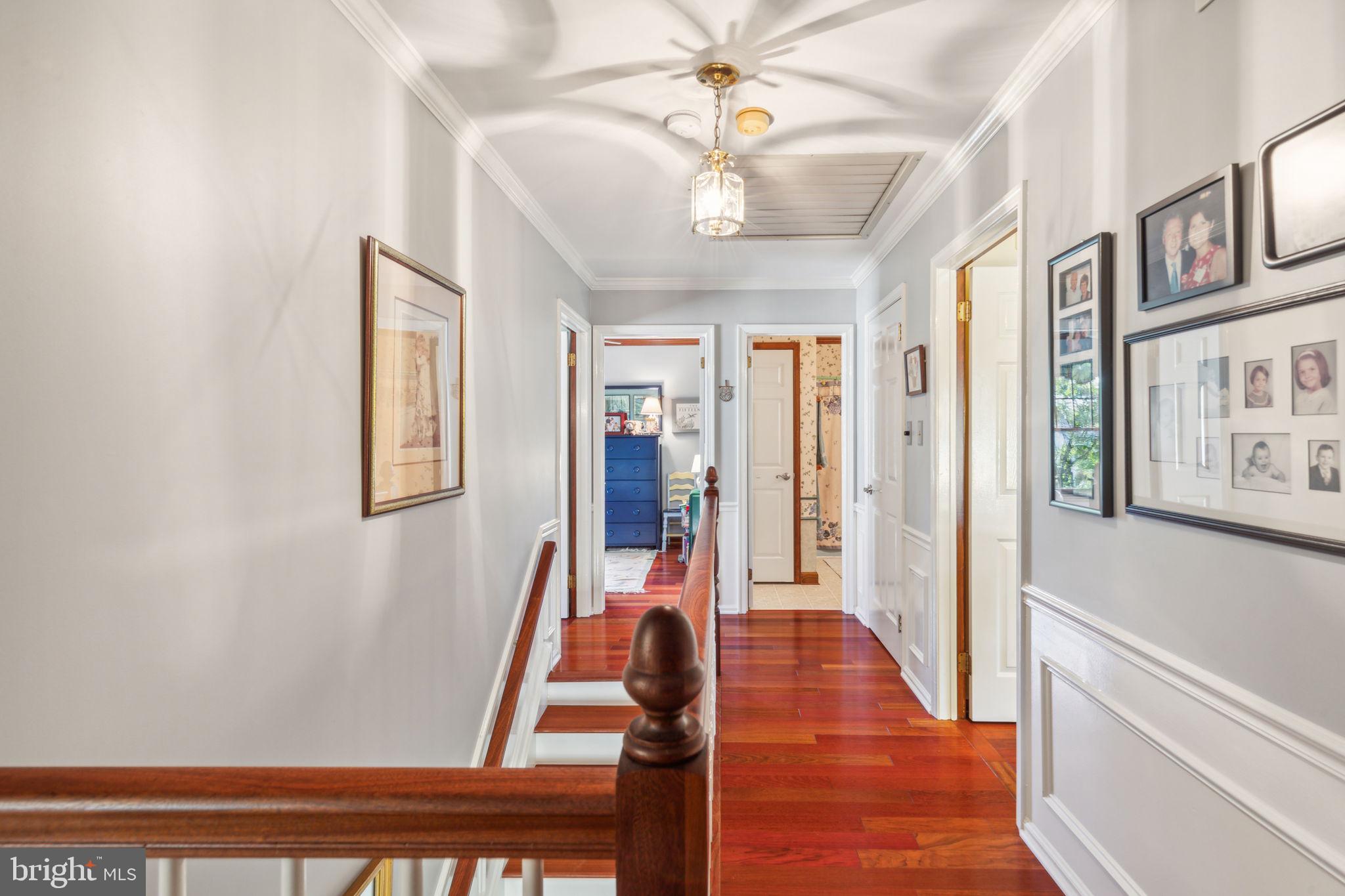 Welcome to 135 Hickory Lane, an expanded Jamestown model in the heart of Woodridge! This home boasts 4-bedrooms, 2.5-bathrooms, and 2,412 square feet of living space. As you approach the property, you'll notice the professional landscaping, multi-zone sprinkler system, and cupola on the garage roof! The blacktop driveway comfortably accommodates six cars, while the solid mahogany front door sets a tone of elegance. Step inside to find an interior that is as functional as it is stylish! The first floor features Bruce Gunstock Oak flooring, while the second floor boasts stunning Brazilian Cherry hardwood. Crown molding adorns every room, including the primary closet, and the attention to detail continues with wainscoting in the dining room and hallways. The spacious kitchen is a chef's dream, featuring Samsung French door extra large refrigerator, LG 5 burner range, Whirlpool Gold microwave, three KitchenAid rack dishwasher, Insinkerator garbage disposal, a large pantry with an electrical outlet, and a push-out kitchen window with a generous windowsill. The family room is perfect for cozy nights in, offering built-in bookcases and cabinets, a gas fireplace with remote control, and adjustable lighting. The upgraded laundry room, expanded by 6 feet, includes a solid mahogany Dutch door, a quartz countertop, a heavy-duty stainless steel sink with a separate faucet, and stacked washer and dryer. Upstairs, you'll find 4 spacious bedrooms and 2 full bathrooms. The primary bedroom features custom closet lighting and a luxurious primary bath with an upgraded shower. Additional bedrooms offer lighting in the closets & ceiling fans, with built-in dressers & bookshelves in the middle bedroom! Outside, the fenced-in backyard boasts a large heated swimming pool, safety fencing, a spacious patio, and an arbor swing with clematis vines. The electrified Wendy House doubles as a playhouse or shed. Additional features include a basketball hoop in the front yard, insulated steel garage doors with remote openers, upgraded garage lighting, pull-down attic stairs on the 2nd floor with large walk-in attic and second attic in the garage, a gas tankless water heater, a Lennox high-efficiency HVAC system, and a whole-house fan with enlarged attic vents. This home is truly a rare find, don't miss the opportunity to make 135 Hickory Lane your forever home. Schedule your showing today!