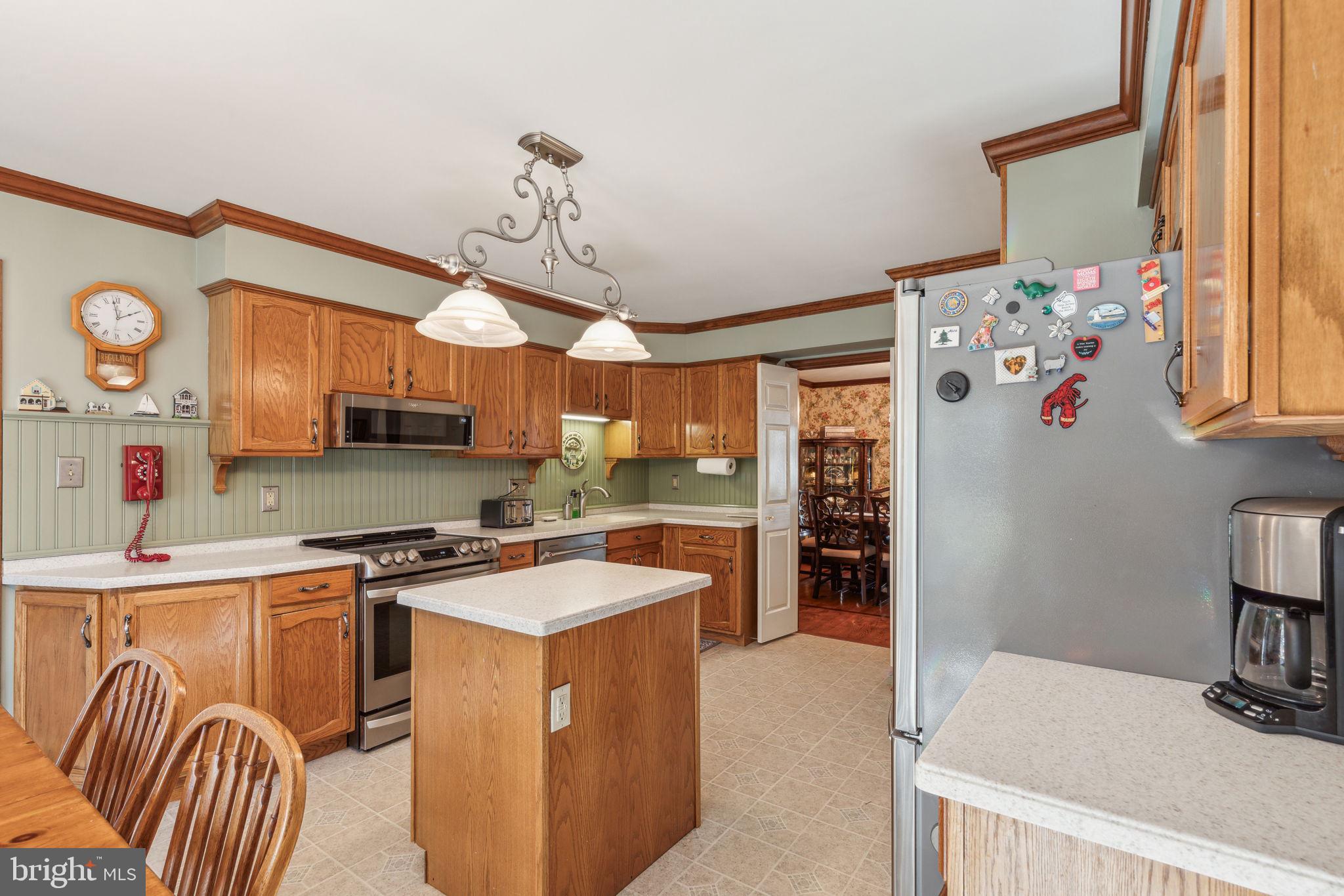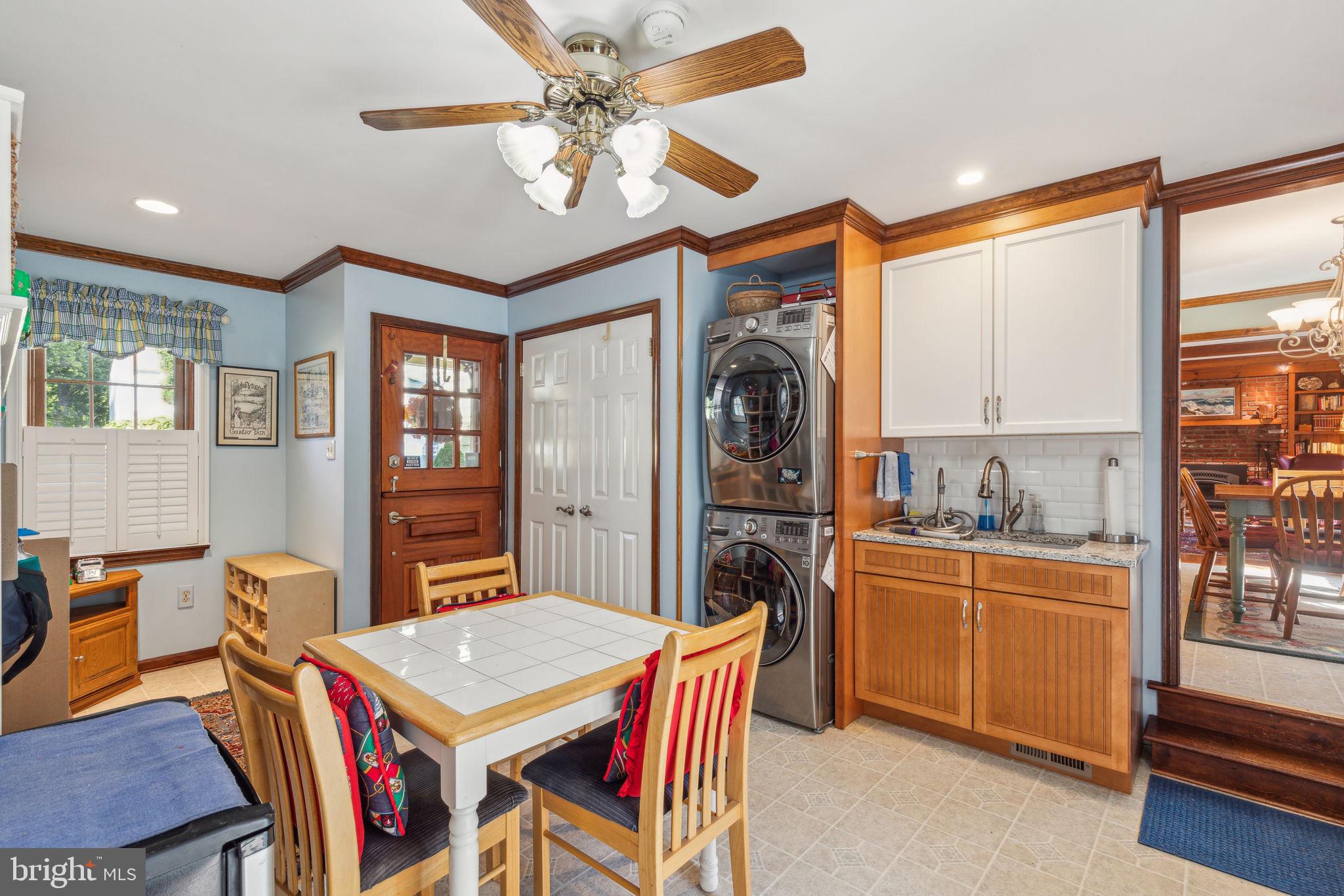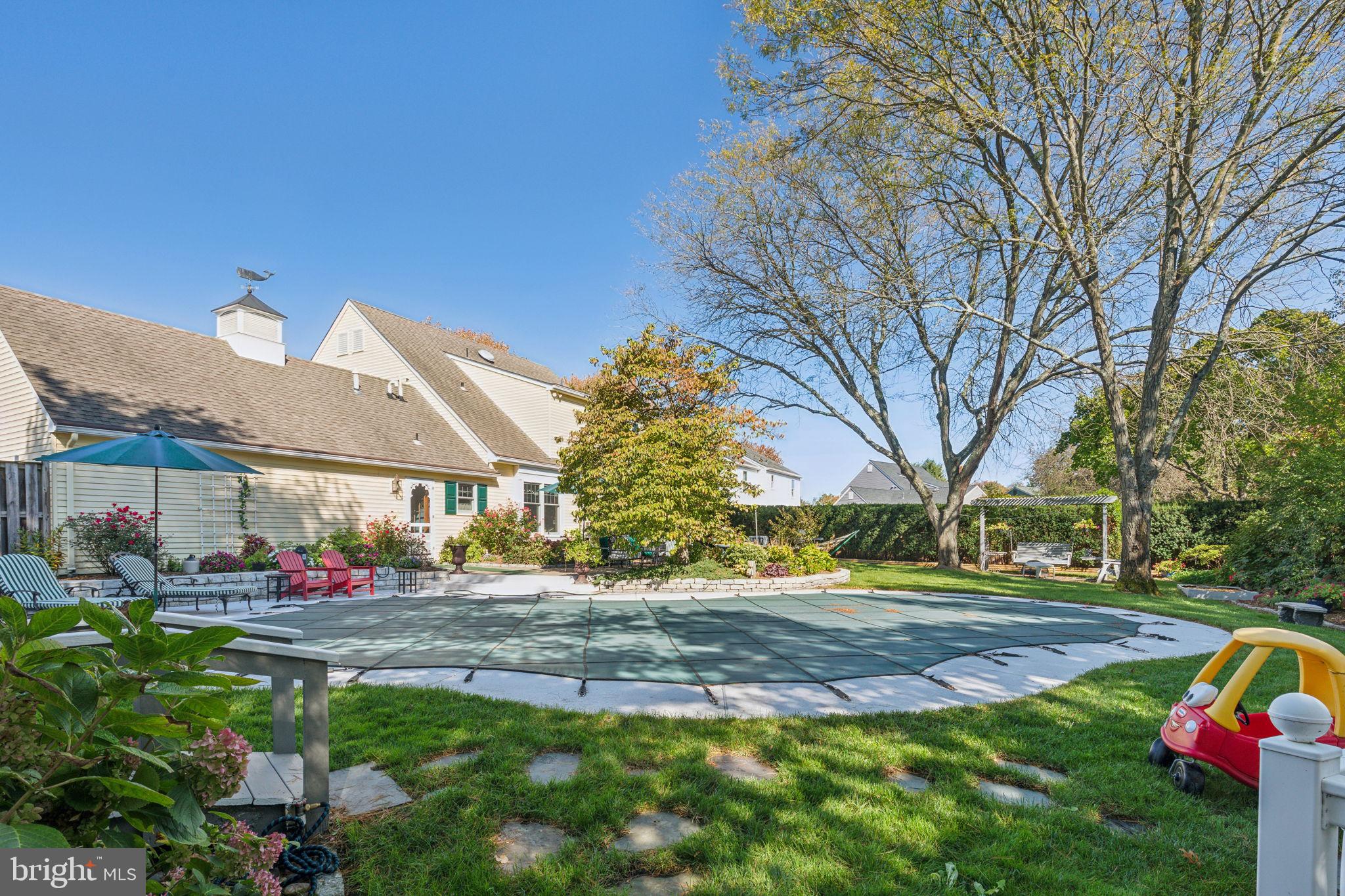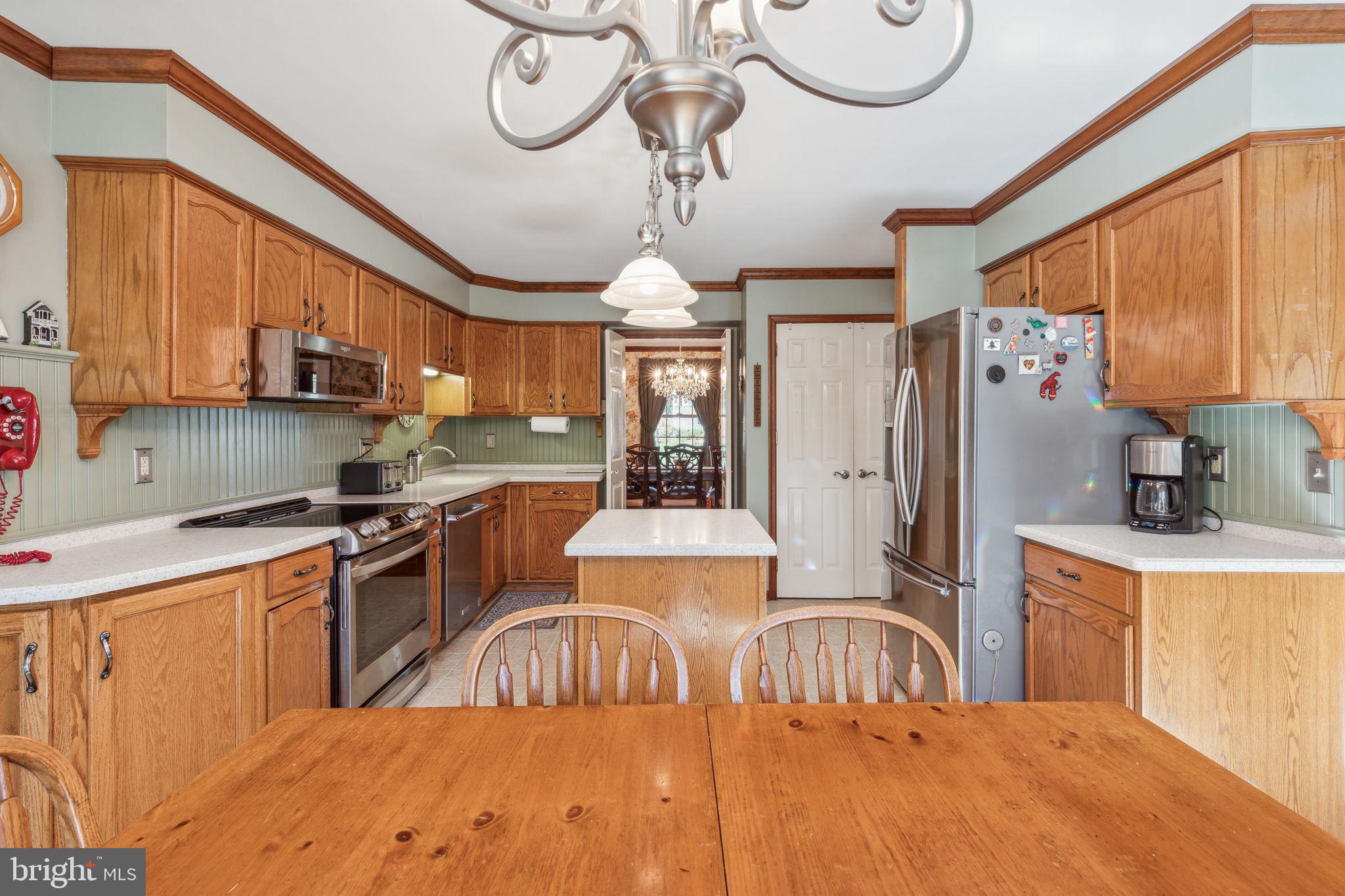 Welcome to 135 Hickory Lane, an expanded Jamestown model in the heart of Woodridge! This home boasts 4-bedrooms, 2.5-bathrooms, and 2,412 square feet of living space. As you approach the property, you'll notice the professional landscaping, multi-zone sprinkler system, and cupola on the garage roof! The blacktop driveway comfortably accommodates six cars, while the solid mahogany front door sets a tone of elegance. Step inside to find an interior that is as functional as it is stylish! The first floor features Bruce Gunstock Oak flooring, while the second floor boasts stunning Brazilian Cherry hardwood. Crown molding adorns every room, including the primary closet, and the attention to detail continues with wainscoting in the dining room and hallways. The spacious kitchen is a chef's dream, featuring Samsung French door extra large refrigerator, LG 5 burner range, Whirlpool Gold microwave, three KitchenAid rack dishwasher, Insinkerator garbage disposal, a large pantry with an electrical outlet, and a push-out kitchen window with a generous windowsill. The family room is perfect for cozy nights in, offering built-in bookcases and cabinets, a gas fireplace with remote control, and adjustable lighting. The upgraded laundry room, expanded by 6 feet, includes a solid mahogany Dutch door, a quartz countertop, a heavy-duty stainless steel sink with a separate faucet, and stacked washer and dryer. Upstairs, you'll find 4 spacious bedrooms and 2 full bathrooms. The primary bedroom features custom closet lighting and a luxurious primary bath with an upgraded shower. Additional bedrooms offer lighting in the closets & ceiling fans, with built-in dressers & bookshelves in the middle bedroom! Outside, the fenced-in backyard boasts a large heated swimming pool, safety fencing, a spacious patio, and an arbor swing with clematis vines. The electrified Wendy House doubles as a playhouse or shed. Additional features include a basketball hoop in the front yard, insulated steel garage doors with remote openers, upgraded garage lighting, pull-down attic stairs on the 2nd floor with large walk-in attic and second attic in the garage, a gas tankless water heater, a Lennox high-efficiency HVAC system, and a whole-house fan with enlarged attic vents. This home is truly a rare find, don't miss the opportunity to make 135 Hickory Lane your forever home. Schedule your showing today!