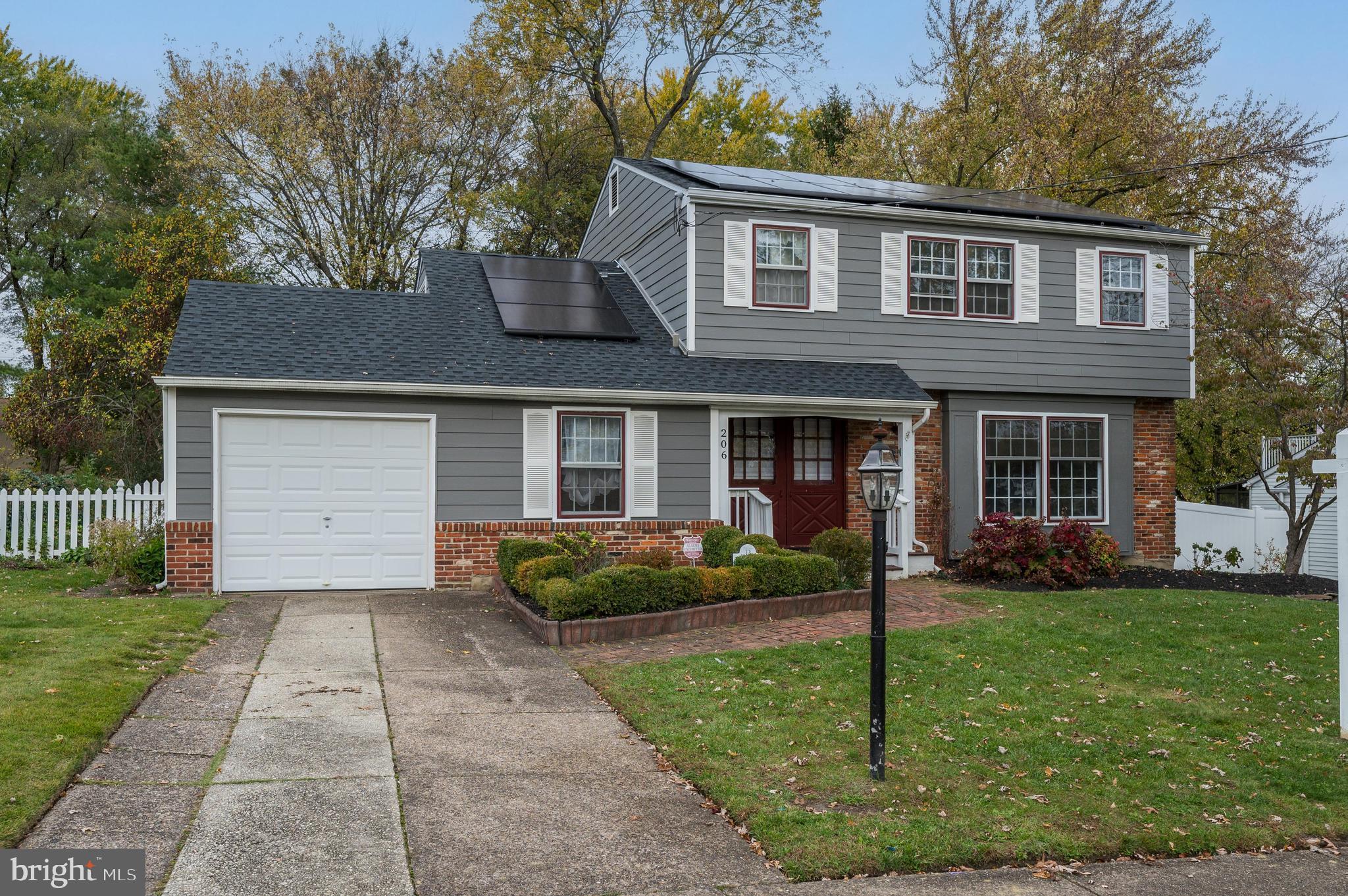 Check out this well maintained, spacious home in desirable Voorhees Township. The house features 3/4 bedrooms, 2.5 baths, a one car garage, and large yard with covered patio. The first floor includes an updated kitchen/dining room with newer appliances (included), a large open family room, living room, half bath, and oversized laundry room (washer and dryer included). The second floor has a huge primary bedroom with a full en suite bathroom with stall shower. There are two additional standard size bedrooms, as well as a bonus room (previously used as a bedroom) with storage access, and a full hall bathroom with a shower/tub. The property is conveniently located within walking distance of the Hi-Speed Line (Ashland), Voorhees Town Center and the neighborhood park/playground - and close to Interstate Highway 295. Public Schools include Osage Elementary, Voorhees Middle School, and Eastern Regional High School. Additional features : New Roof with Solar (6 months), Siding (10 years), HVAC (3-4 years), Kitchen Appliances (4 years or less), Washer (6 months), Dryer (3 years), Hot Water Heater (5 years).
