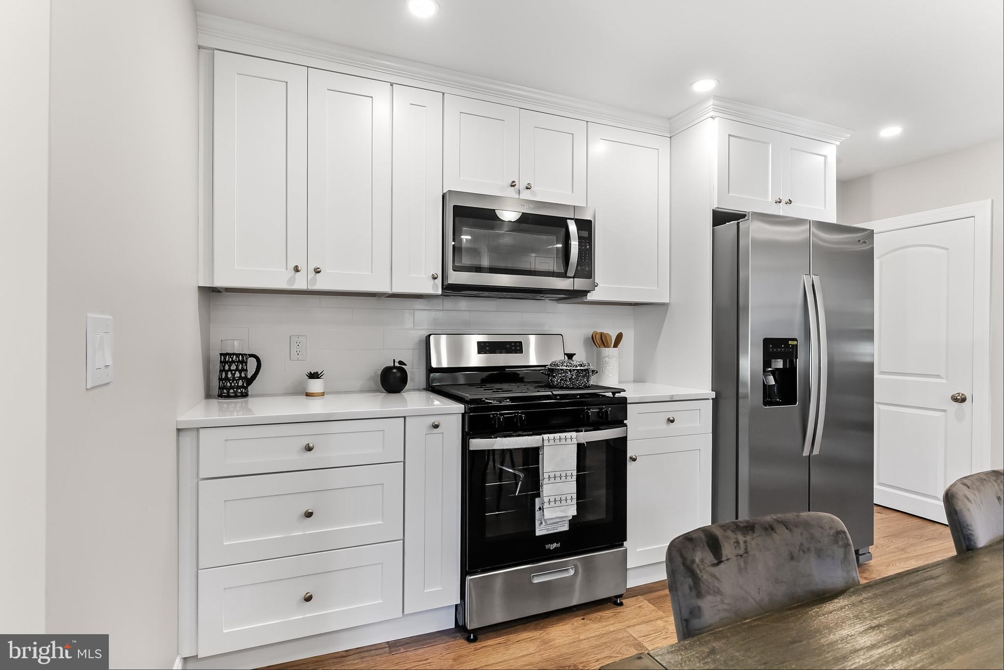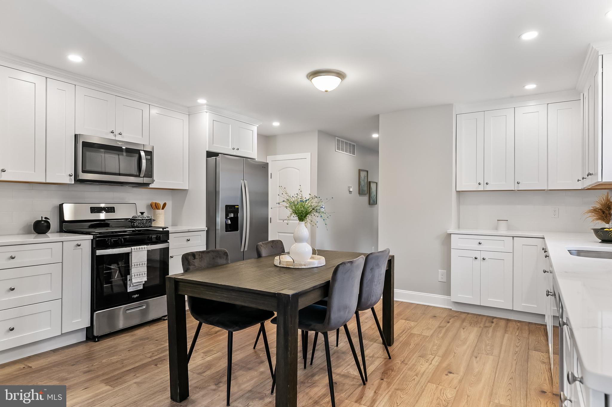 A Kitchen That's a Chef's Dream - The heart of this home is the completely renovated large kitchen, where culinary dreams come to life. Featuring top-of-the-line Whirlpool stainless steel appliances, beautiful quartz countertops, and an abundance of storage space, it's a space that will delight any home chef. Whether you're cooking for family or hosting friends, this kitchen is a true gem.