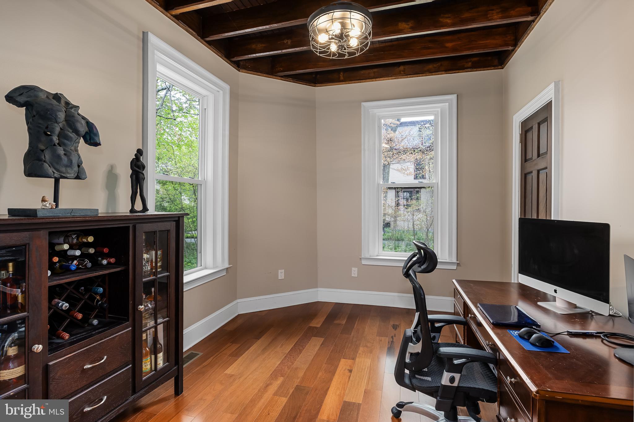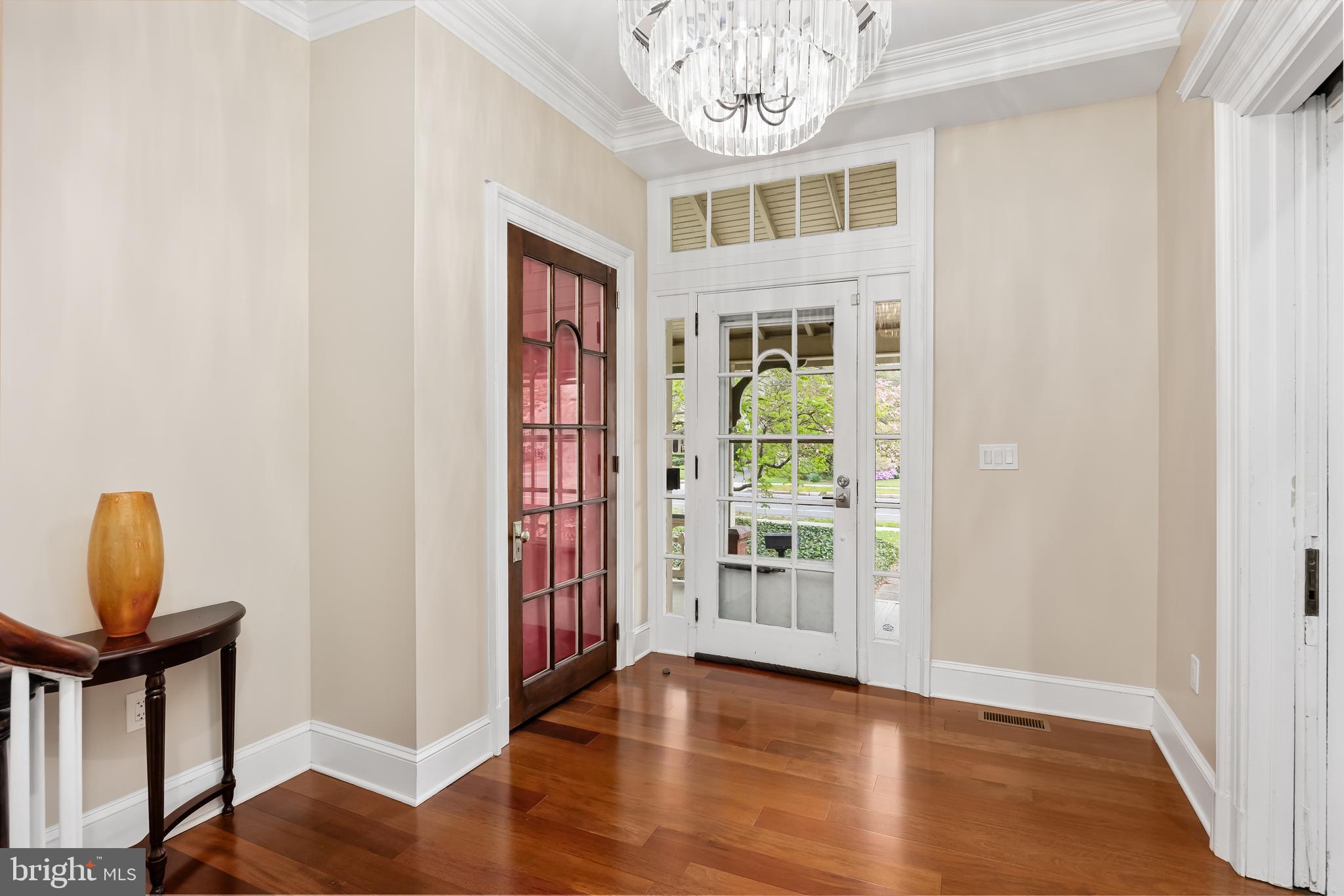 Delight in the well-manicured front lawn, mature trees, and lovely landscape as you approach the welcoming wrap-around front porch. Step inside to discover every interior detail, carefully curated and revived by the current homeowners, from the crown and decorative moldings, chair rails, door and window trims, woodwork, and hardware details.