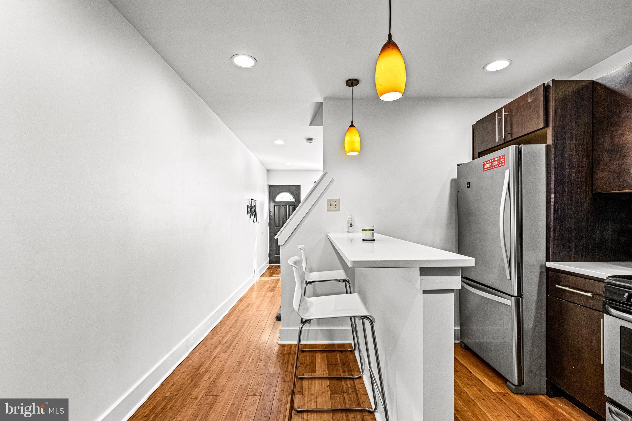 Welcome to this inviting 2-bedroom, 1.5-bathroom home in the vibrant city of Philadelphia, PA. As you step inside, you'll be greeted by an abundance of natural light and elegant hardwood floors throughout the first floor. The kitchen is equipped with stainless steel appliances and a breakfast bar with seating, creating a welcoming space for gatherings. The main level also offers a comfortable living area with air conditioning. Ascend the modern staircase with sleek railing to the second floor, where two bedrooms provide ample storage and a full bathroom. The finished basement offers additional living or entertainment space and a convenient half bath, while the outdoor area is ideal for relaxation and hosting gatherings. This home is conveniently located near Cione Playground and Stock's Bakery, providing easy access to local amenities and entertainment options. This property offers both comfort and practicality for modern urban living. Don't miss the chance to call this stylish and well-appointed residence your own.